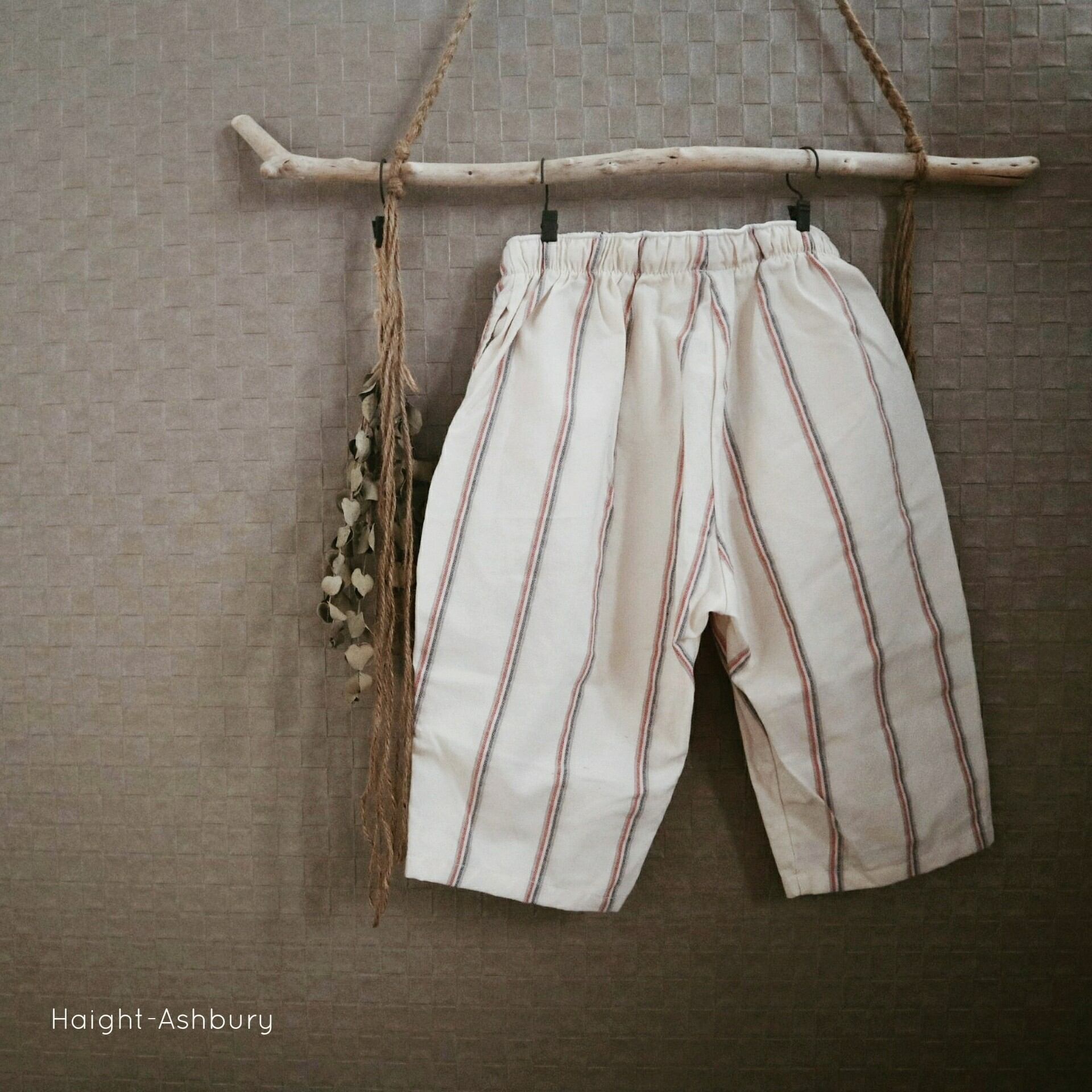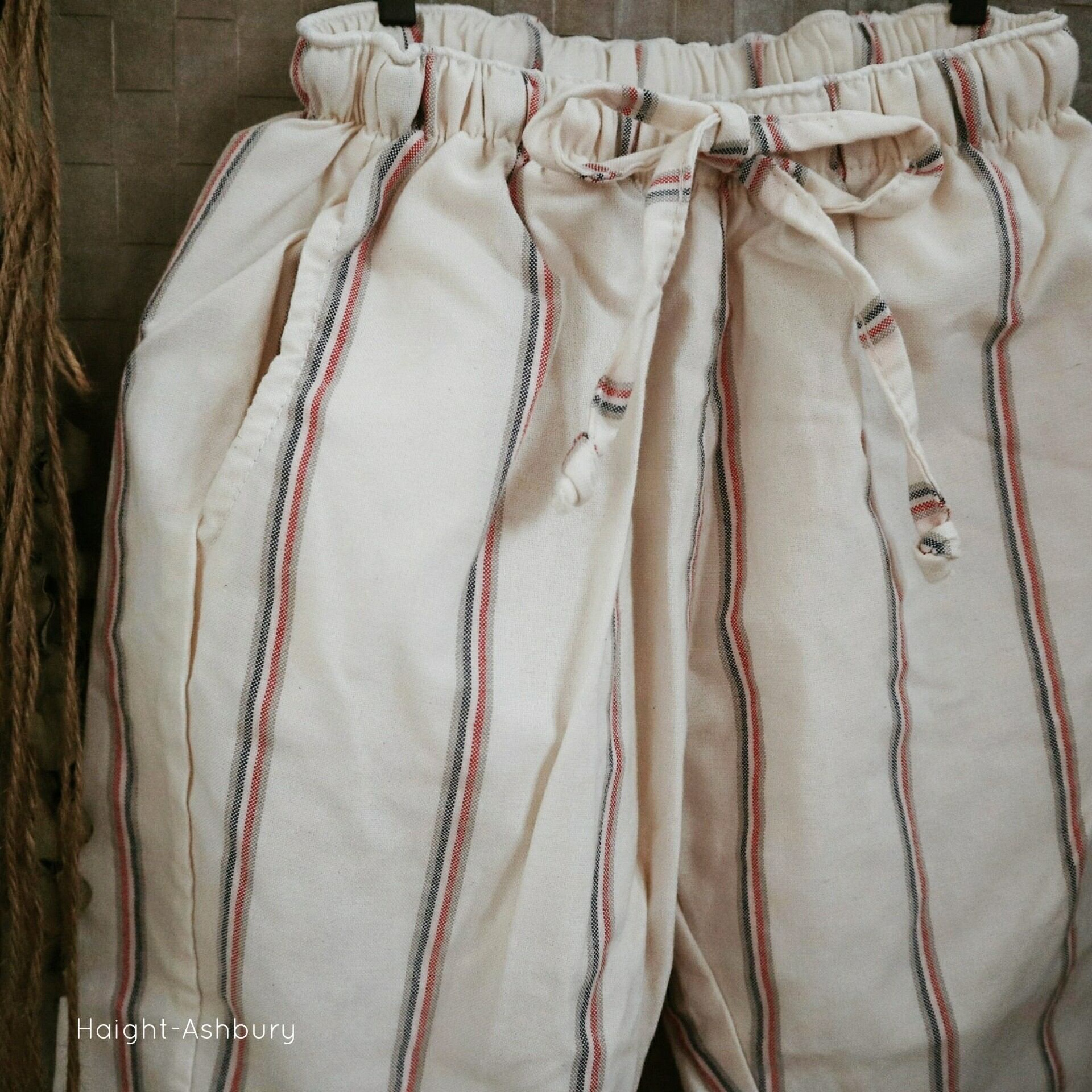 よく見るとアイボリーにグレー×赤×青×白のマルチストライプになっていて、古着屋さんに売っていそうな雰囲気のパンツです⚘