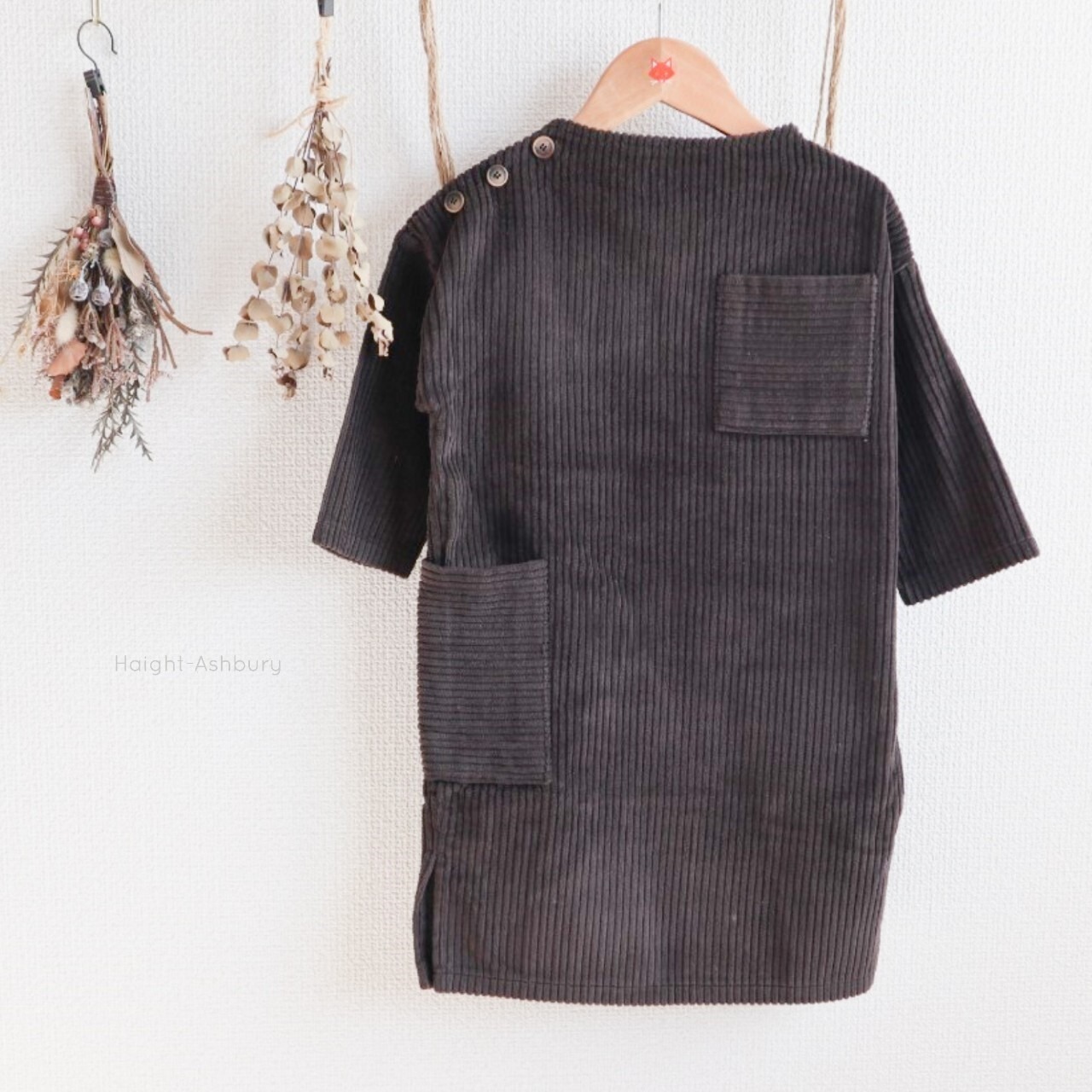 ストンとしたシルエットで、肩のボタンやポケット、スリットがポイントの大人っぽいデザイン♡